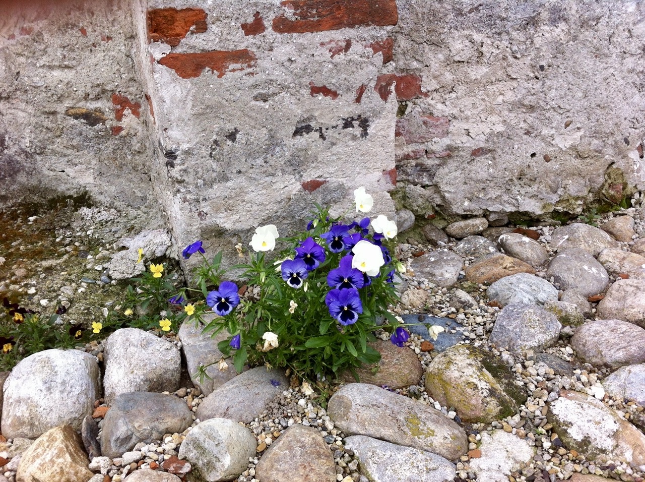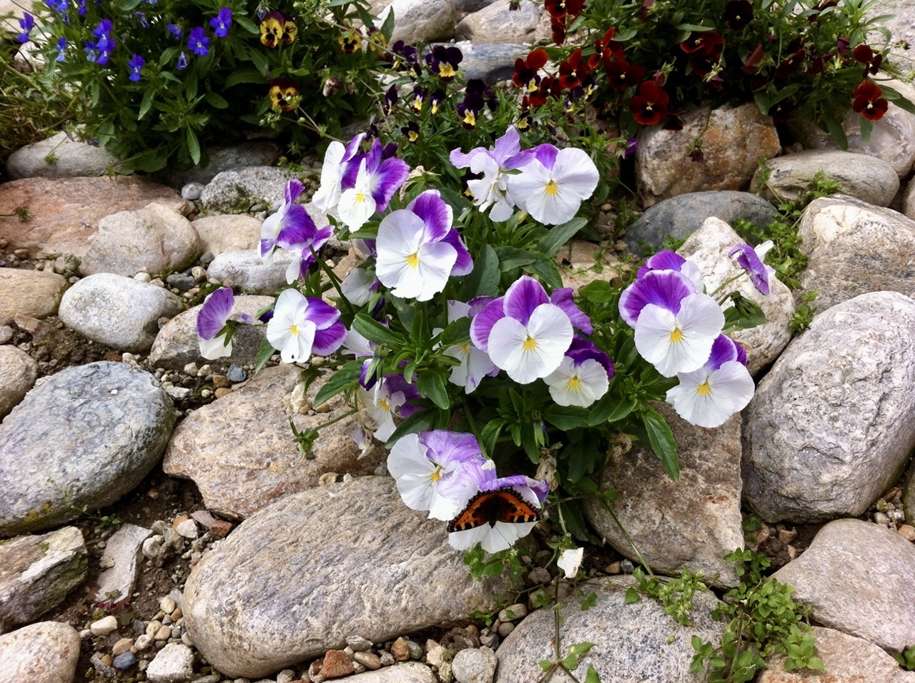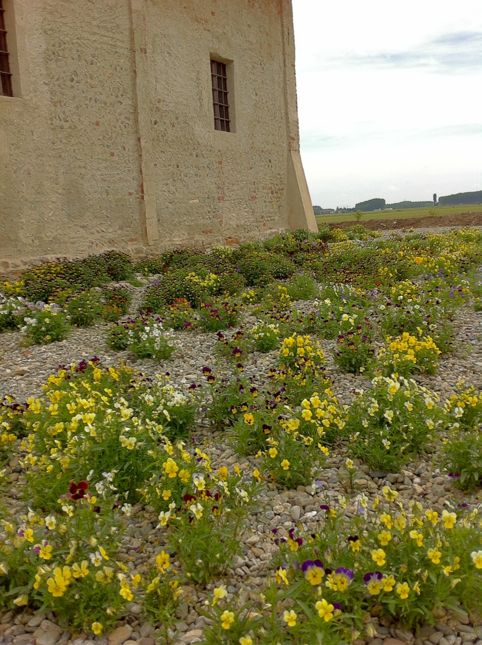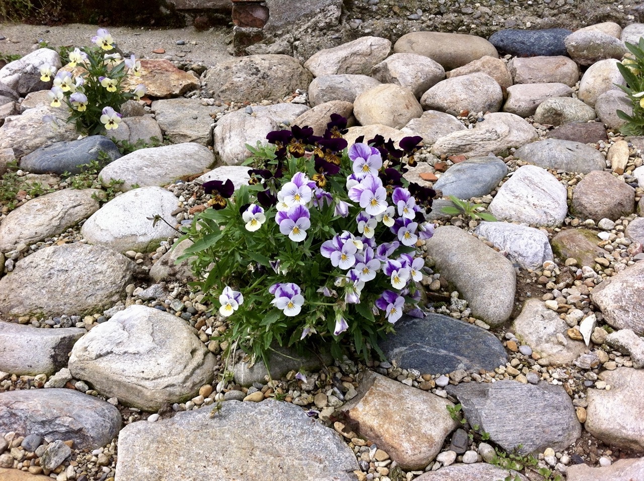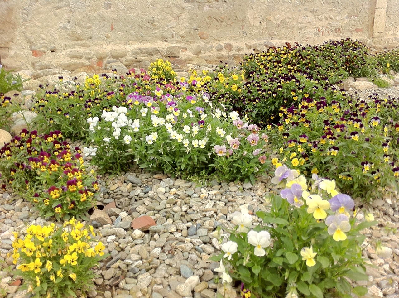 Su un letto molto drenante di stabilizzato e ghiaia, la semina di moltissime Violette Cornute in varietà ha assicurato per una stagione colore e la visita di molti curiosi. Qualche Iris ha fatto da accompagnamento.